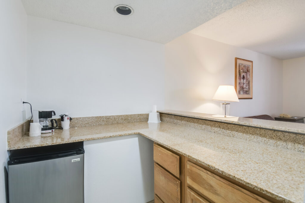 Each suite includes a microwave, refrigerator, and coffee setup, so you can enjoy snacks, light meals, or a cozy cup anytime. Perfect for extended stays or those who love a little extra convenience.